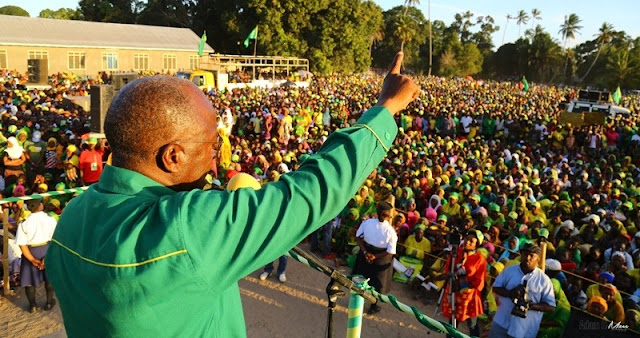 Mgombea Urais wa Jamhuri ya Muungano wa Tanzania Kupitia Chama cha Mapinduzi CCM Dk. John Pombe Magufuli akihutubia wananchi wa Kibiti mkoani Pwani wakati akiomba kura.